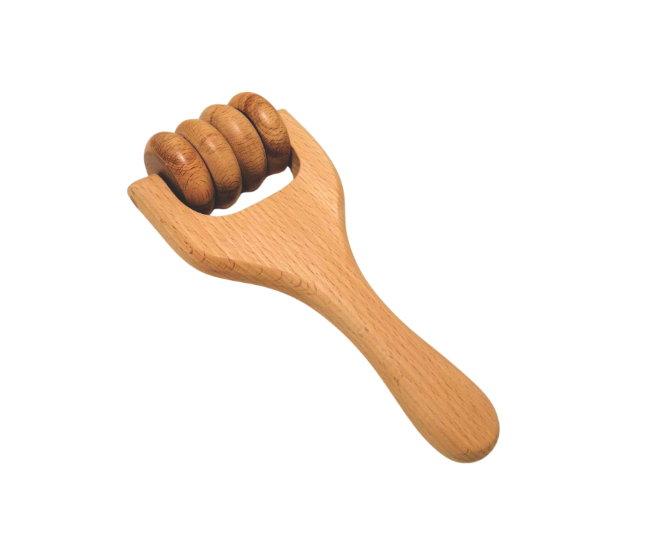 امنح جسمك لحظات من الاسترخاء العميق مع هذا المدلك الخشبي اليدوي المصمم لتخفيف التوتر وتنشيط الدورة الدموية. يتميز بتصميم أنيق ومريح لليد، مع بكرات خشبية ناعمة تدور بسلاسة لتوفير تدليك فعال ومريح.