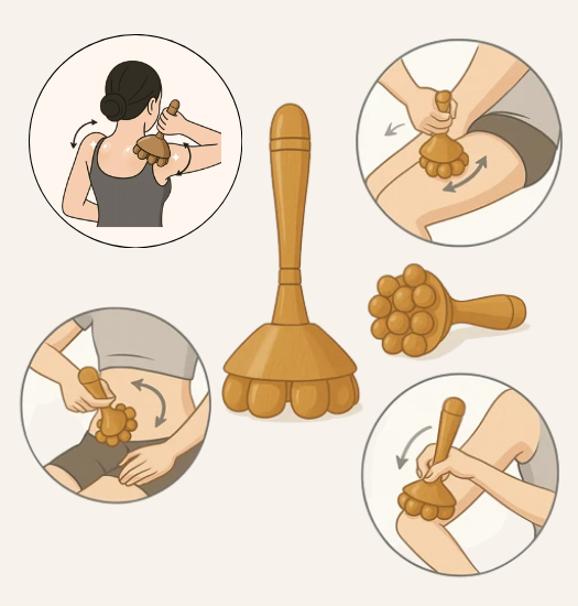 مصنوعة من خشب طبيعي عالي الجودة بملمس ناعم ومقبض عملي يمنحك تحكمًا ثابتًا وسهولة في الاستخدام، لتدليك أكثر دقة وراحة.